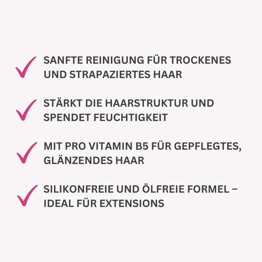 - Sanfte & silikonfreie Reinigung – Das Volume Shampoo befreit die Ansätze gründlich von Ablagerungen, ohne die Verbindungsstellen zu belasten. Die leichte Textur verteilt sich mühelos zwischen den Bondings – für ein sauberes, frisches Haargefühl.